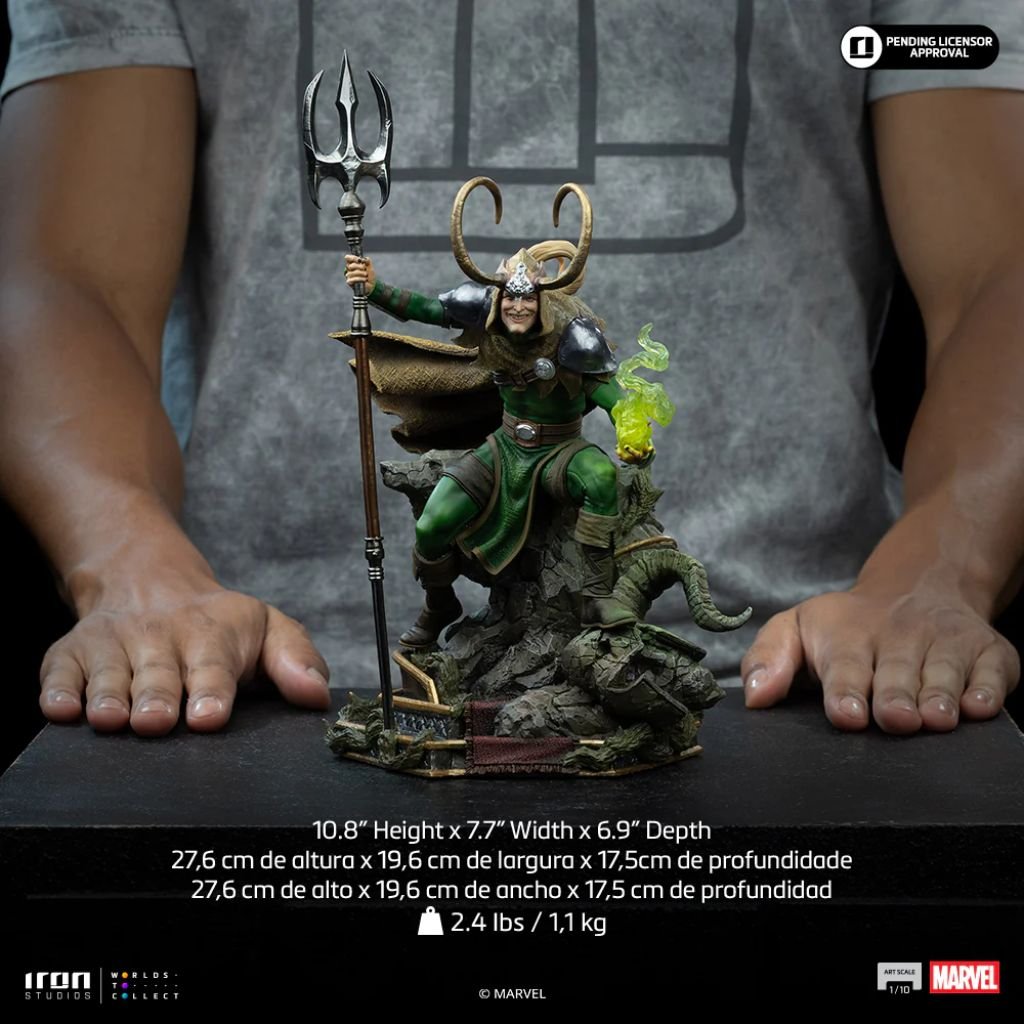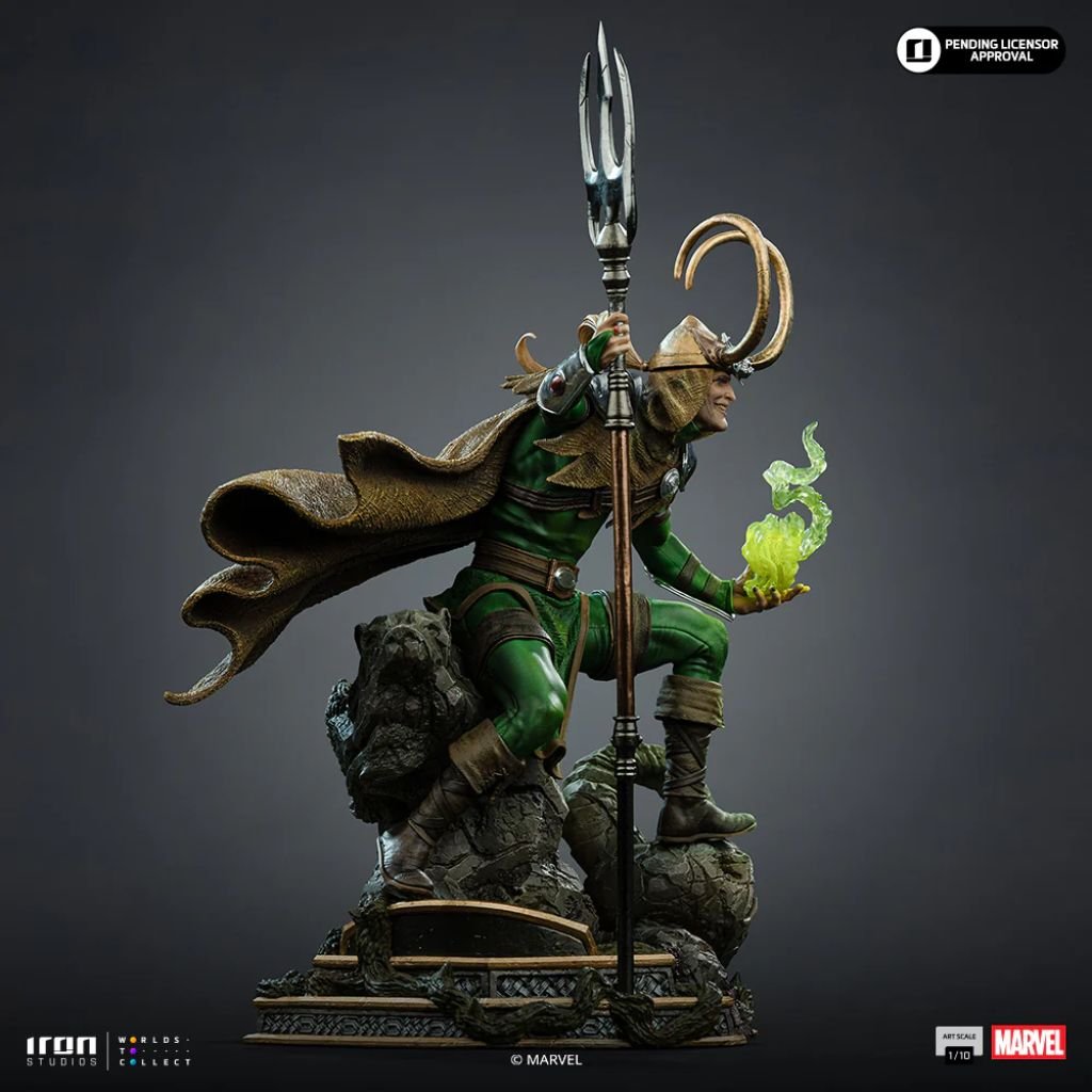 About the Product: Produced in Polystone by Iron Studios in the Art Scale line, the Loki statue presents the character in a dynamic and expressive pose, conveying his provocative personality and signature confidence. The composition highlights the costume with detailed textures, refined paintwork, and effects that enhance the magical elements in his hand, along with a themed base that reinforces the atmosphere of power and domination. The piece combines striking visual presence with premium finishing, making it a standout addition for Marvel collectors and fans of the God of Mischief.