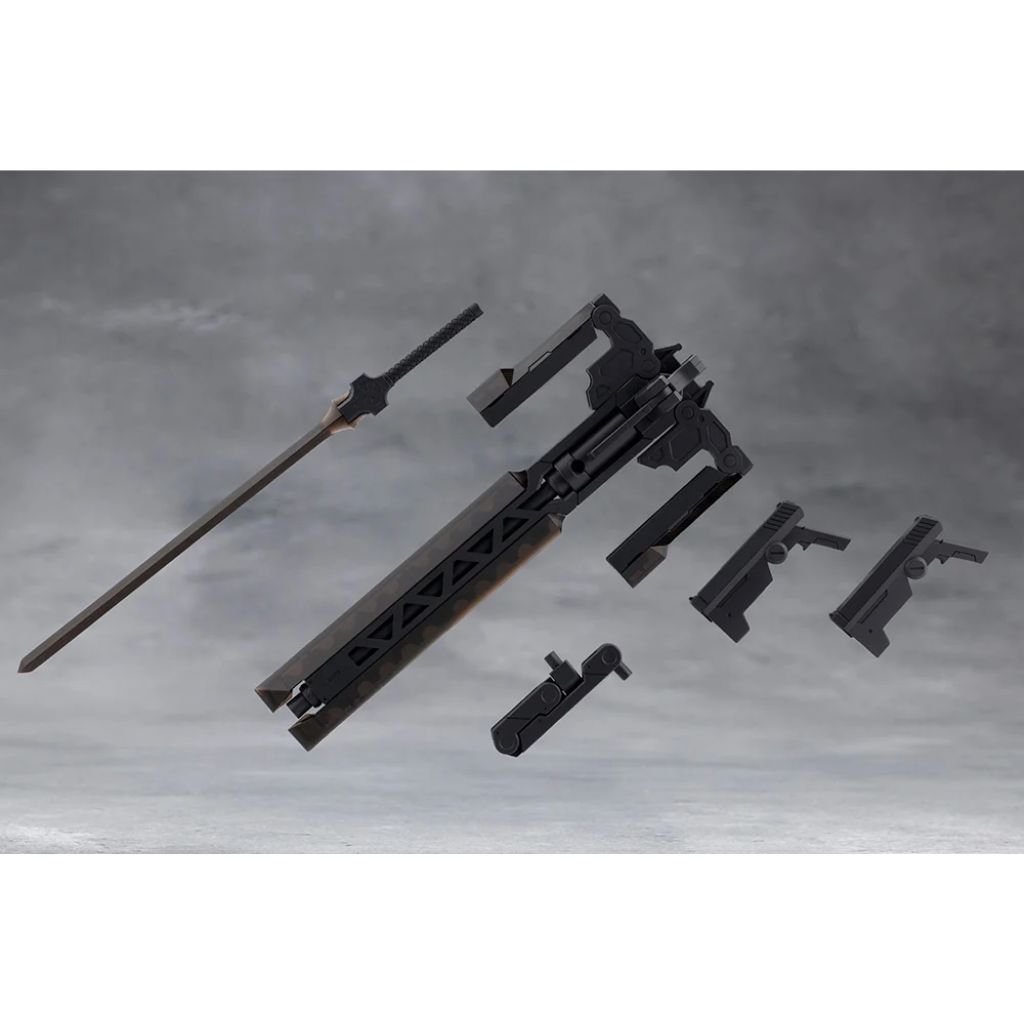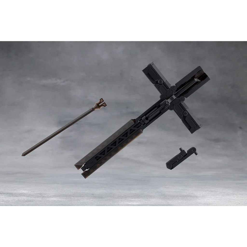 Grave Arms2 is a combination weapon resembling a cross. While the primary weapon is a giant cannon, it also acts as a large sheath for a laser blade and dual handguns. In addition to transforming into a large sword, the grip can be removed attached to the included effect parts to create a deadly laser blade sure to liven up any heroic action scene. The weapon can also be mounted to various places using the articulated mounting arm.