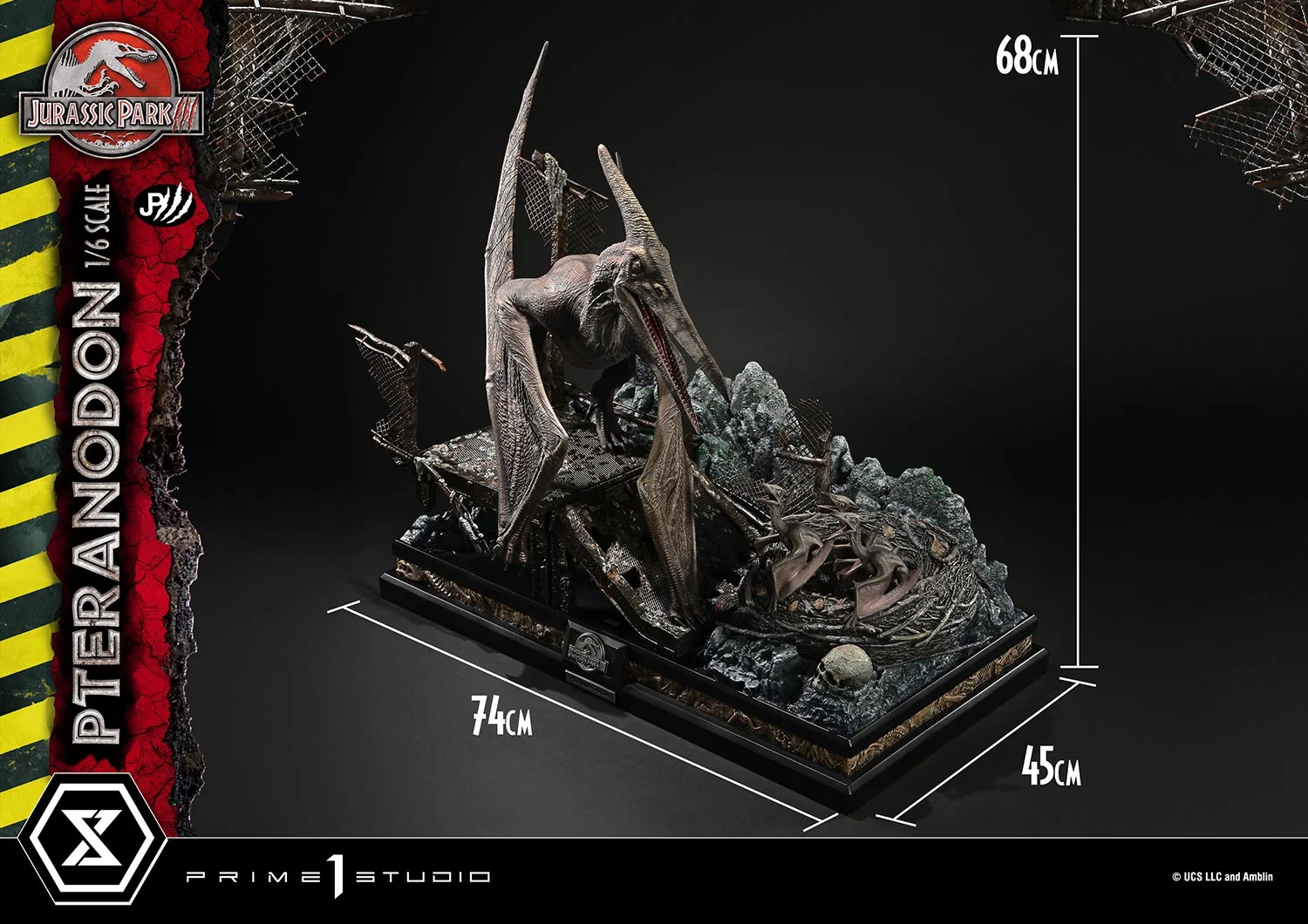 A chilling scene unfolds in the mist—screams pierce the air as the child is snatched into a nesting ground echoing with shrill cries. Inspired by the terror Eric experienced, this 1/6 scale statue captures the world of the winged predators in stunning detail. The adult Pteranodon folds its vast wings as it watches over the nest below. The hungry juveniles push forward, mouths open in desperation. The composition evokes a powerful sense of species-driven unity, delivering the message that this is no place for humans—and that the viewer, too, is seen as prey.