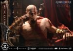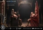 An expression tinged with irritation. Ash-white skin marked by profound loss. Muscles swelling like carved stone. Every sculpted and painted detail conveys the warrior in his entirety. Weathering is etched into the golden gauntlets and greaves, while the waistcloth shows realistic wear and fraying. The Blades of Chaos visible behind him are captured down to the finest nuances of their design. Beneath him lies a massive ancient Greek throne, and the vivid crimson drapery falling elegantly from it summons memories best left unspoken.