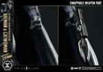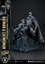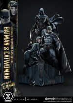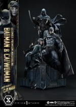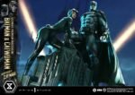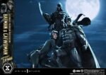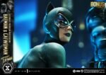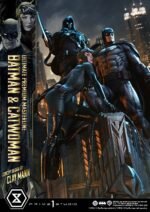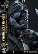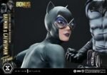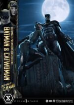 The muscular physique of Batman evokes anatomical precision, while optional parts allow him to hold his grapnel gun. Catwoman’s form, defined by carefully studied bone structure and muscle balance, captures an elegant silhouette. Her whip has been meticulously crafted for a sharp yet fluid impression. Both characters’ costumes feature deep, dark tones emphasizing gloss and shadow, and the base—engraved with ominous motifs—adds an air of grandeur.