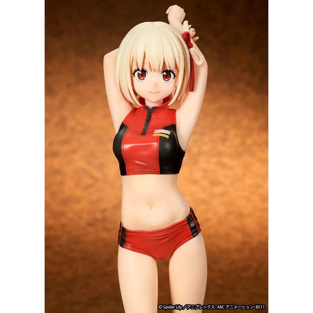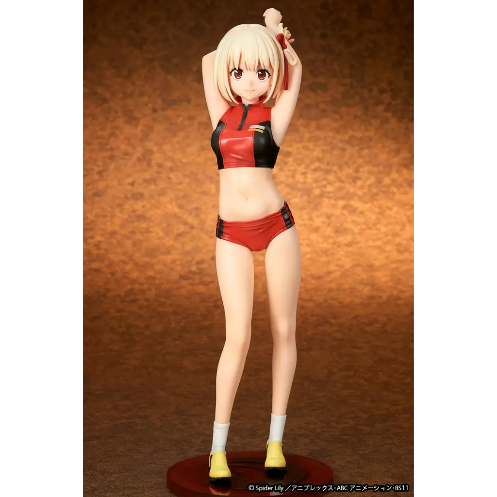 Chisato Nishikigi from the TV anime “Lycoris Recoil” is now an adorable figure from Ques Q, in the training outfit she wore when she renewed her Digital Arts license in episode 3 of the series! With her arms behind her head, she’s giving herself a bit of a stretch, with an energetic smile on her face. Her base is included. Order her for your own collection today!