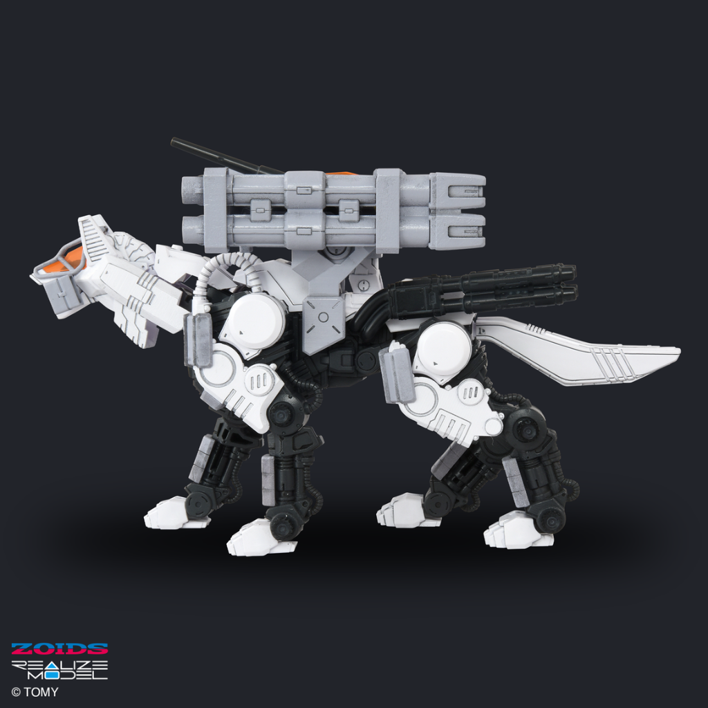 Lock on and let the hunt begin with your Zoids Realize Model Command Wolf Urban Warfare. Thanks to a specially designed mechanism, the entire body can be positioned manually, allowing a variety of action poses unique to wolf-type Zoids: from dynamic running stances to a lowered-head tracking pose that reflects the Command Wolf’s reconnaissance role in locating and pursuing enemy units. All mounted weapons can be moved as well, including a rocket launcher that elevates to adjust its firing angle, making it possible to recreate a wide range of battle scenes from the anime. In addition to the weapons, extra armor, and attachment points, the head parts have been redesigned to further expand the Zoids range of motion. The cockpit hatch opens and closes, and an included pilot figure can be seated inside. Standard Command Wolf parts are also included, allowing it to be assembled as an updated version that features an expanded range of motion.