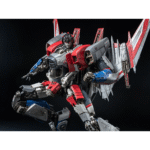DLX Starscream stands approximately 27 cm (10.6 inches) tall. DLX Starscream features newly sculpted parts including head, signature shoulder intakes, and other details and elements across his body, arms, and legs. He also features a magnetically controlled eye lighting system, and a die-cast alloy internal frame for enhanced durability and handling, with approximately 51 points of articulation. The knee joint structure has also been reconfigured using die-cast alloy. This allows the figure to offer excellent balance and dynamic posing, providing a premium feel. The body showcases precise, sculpted details and mechanical structures, combined with threezero’s signature battle-damaged weathering techniques, which carefully reproduces mechanical abrasions for realistic textures.
