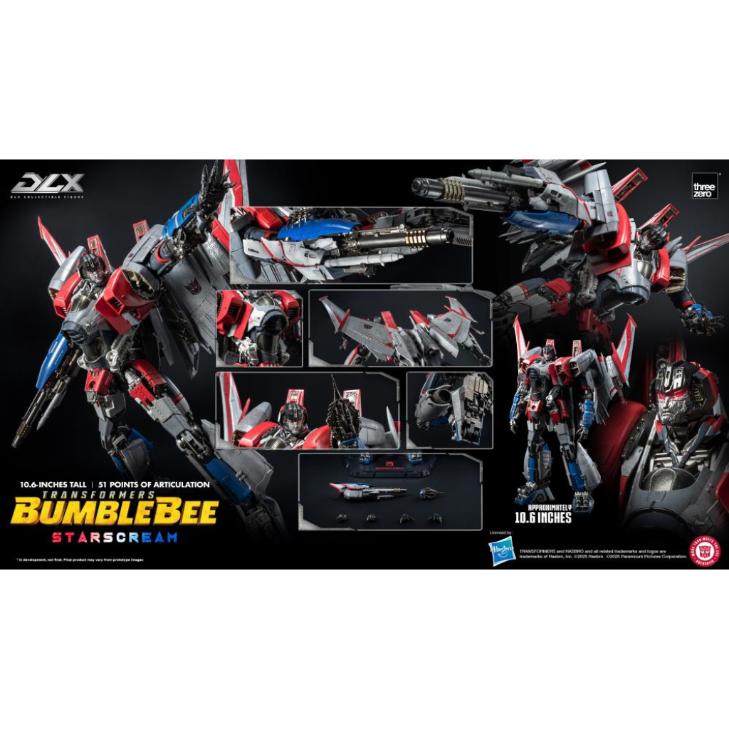 From the live-action film Transformers: Bumblebee, Threezero proudly presents the DLX Starscream! This figure features threezero’s renowned painting techniques to meticulously recreate Starscream’s appearance from the film.