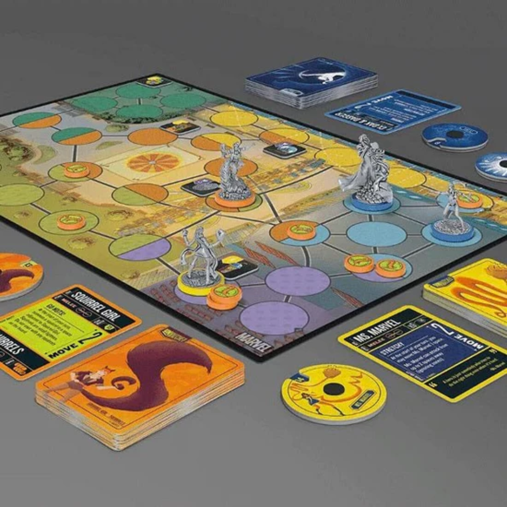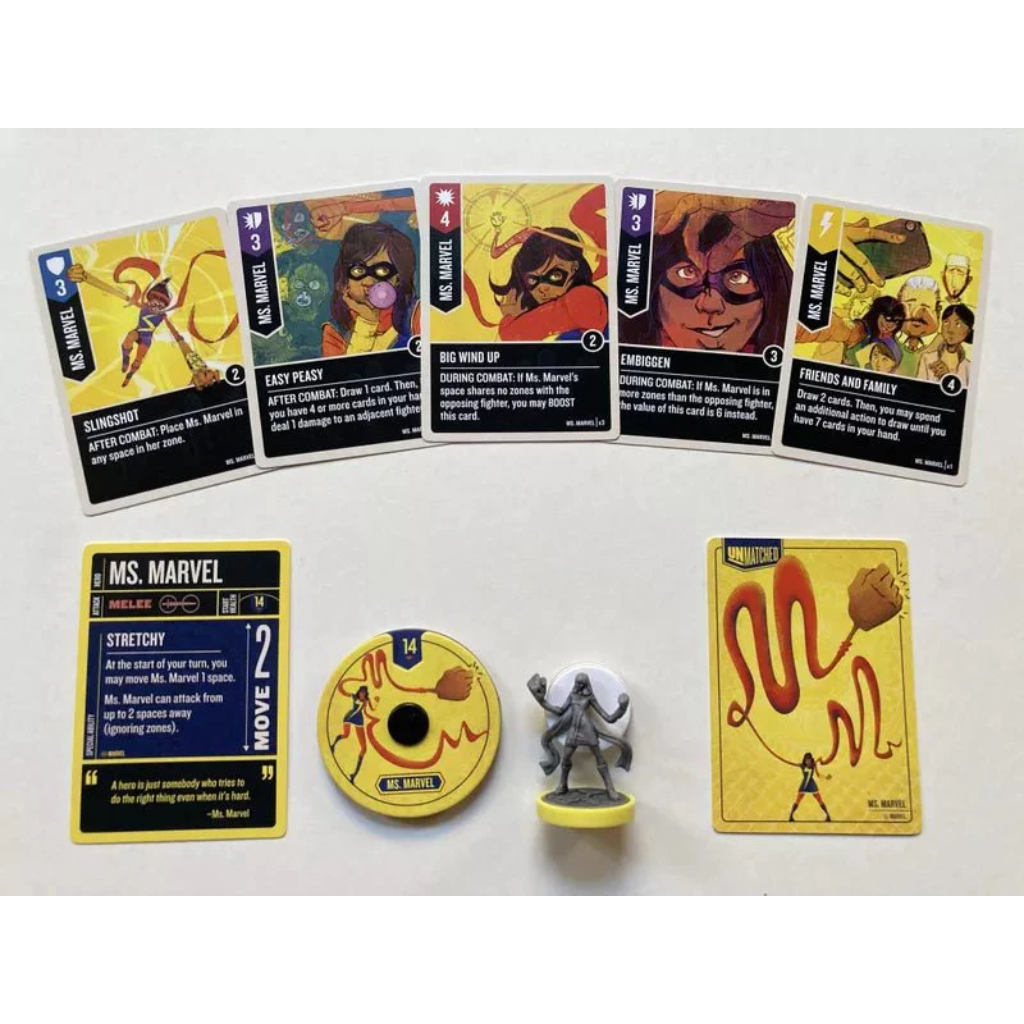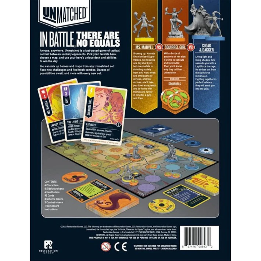 Unmatched: Teen Spirit features four characters from the Marvel comics universe: Ms. Marvel, Squirrel Girl, and the team of Cloak and Dagger.